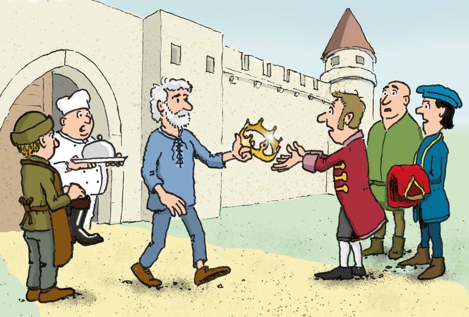 Ein mächtiger König lebt in einem prächtigen Schloss hoch oben auf dem Berg. Unten im Tal aber herrschen Not, Streit und Sehnsucht. Bis der König eines Tages beschließt: „Ich selbst will zu meinem Volk gehen – ganz einfach, als einer von ihnen.“